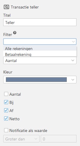 De widget Transactie teller is een simpele widget, te vergelijken met de getoonde totalen rechtsonder in het Transactieoverzicht:
