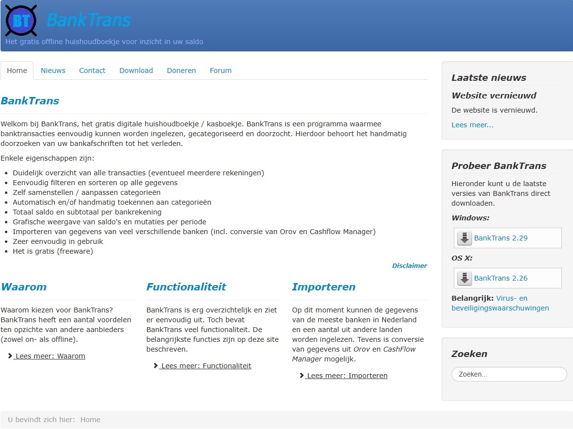 Met het stoppen van het onderhoud en ondersteuning van BankTrans is het tijd om terug te blikken op de groei en ontwikkeling die BankTrans in de loop der jaren ondergaan heeft. Ook de website is verplaatst en dient, in afgeslankte vorm, nog voor ondersteuning van actieve gebruikers.
